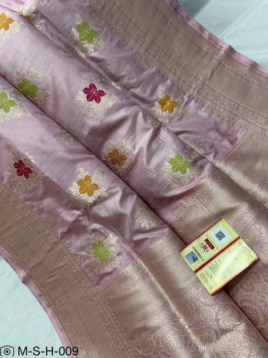 Shaded Pink Handwoven Pure Katan Meenakari Banarasi Saree