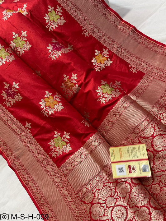 Red Handwoven Pure Katan Meenakari Banarasi Saree