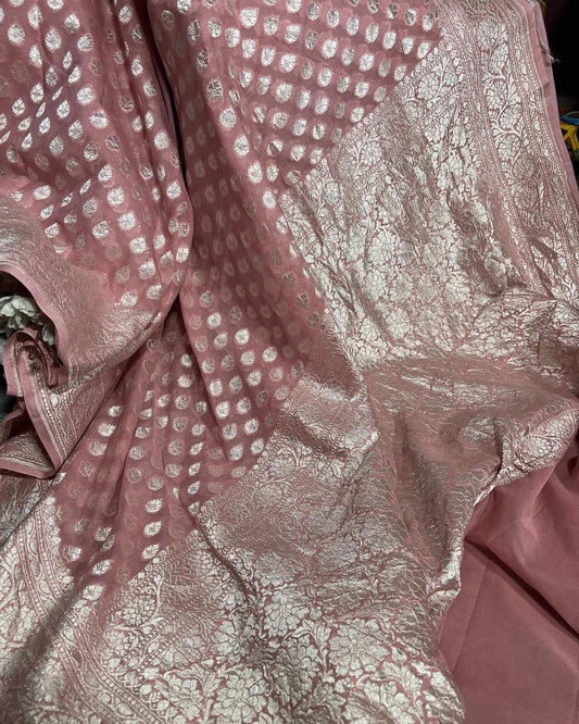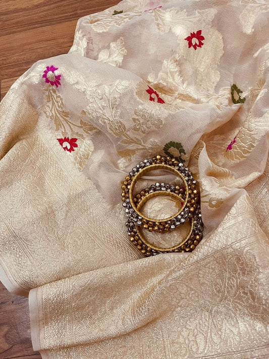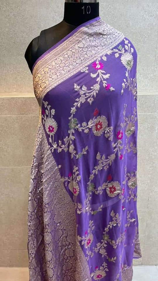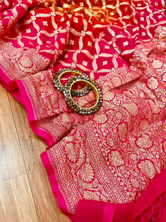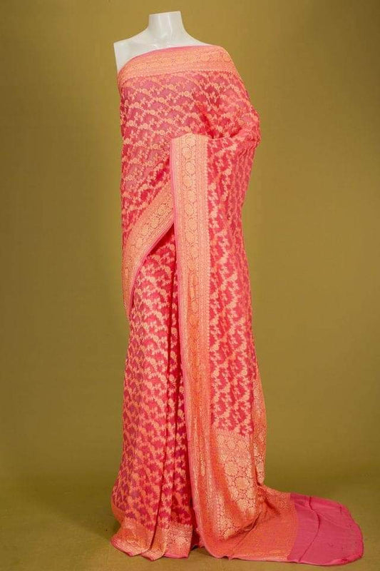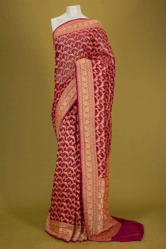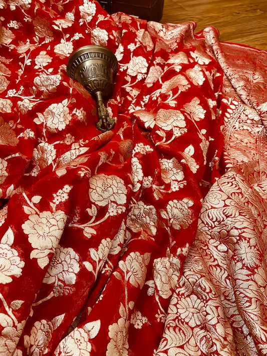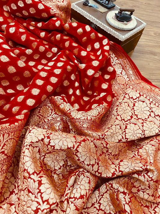 Pure Khaddi Georgette Silk Red Banarasi Saree