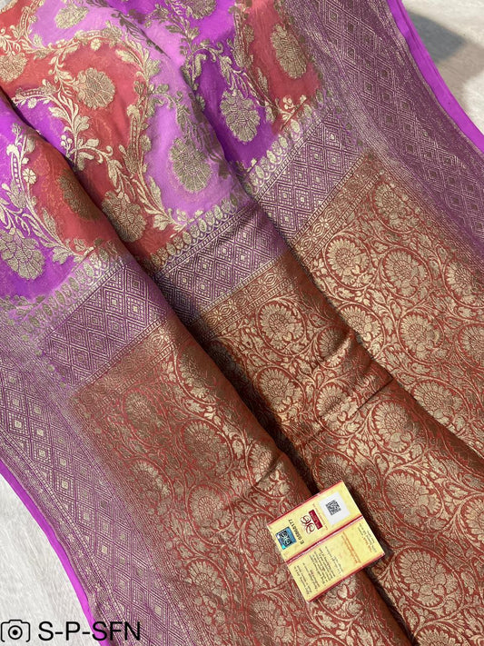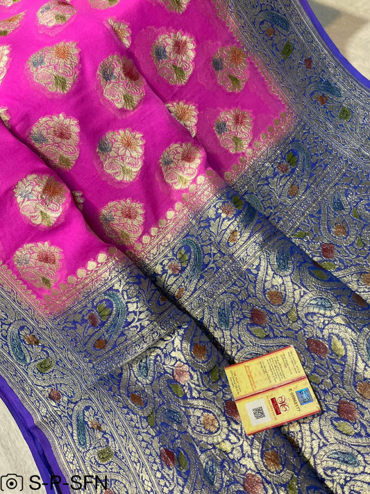Pure Khaddi Georgette Pink Banarasi Saree