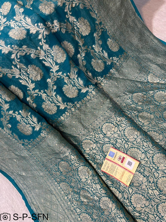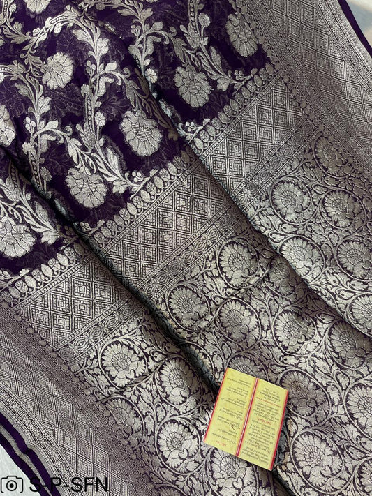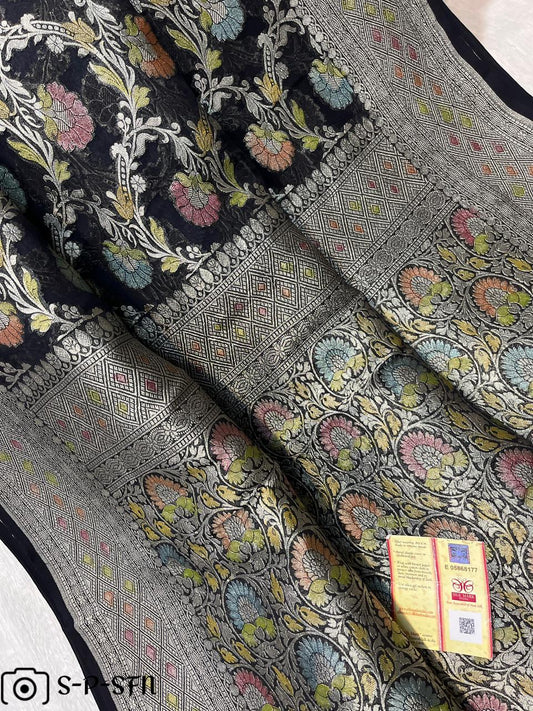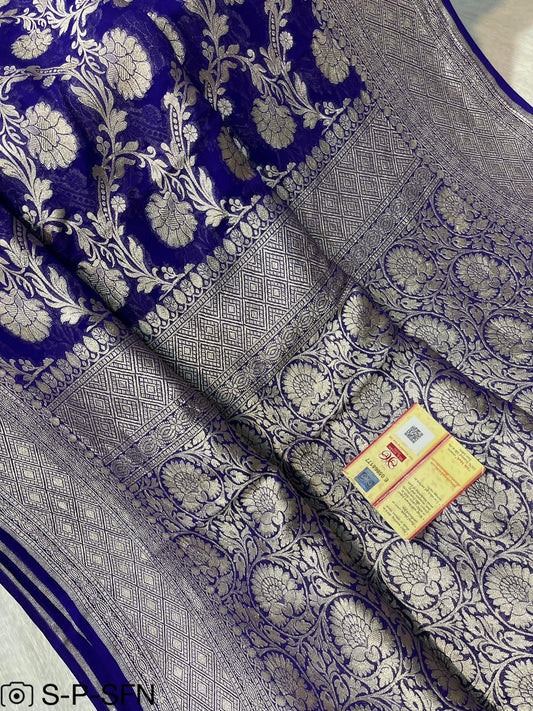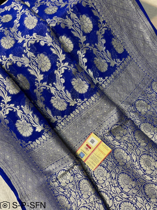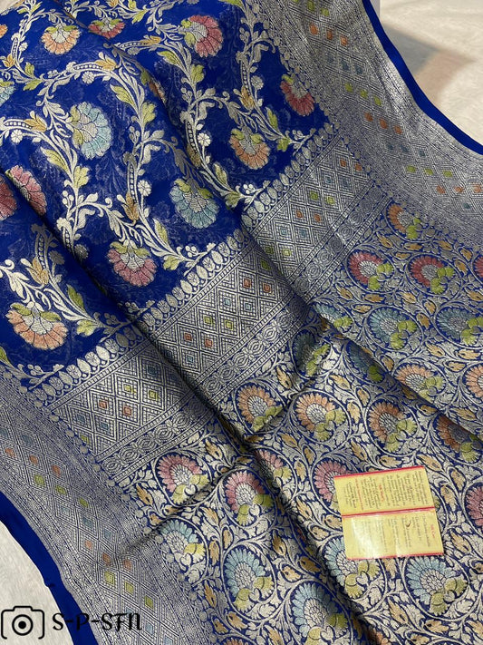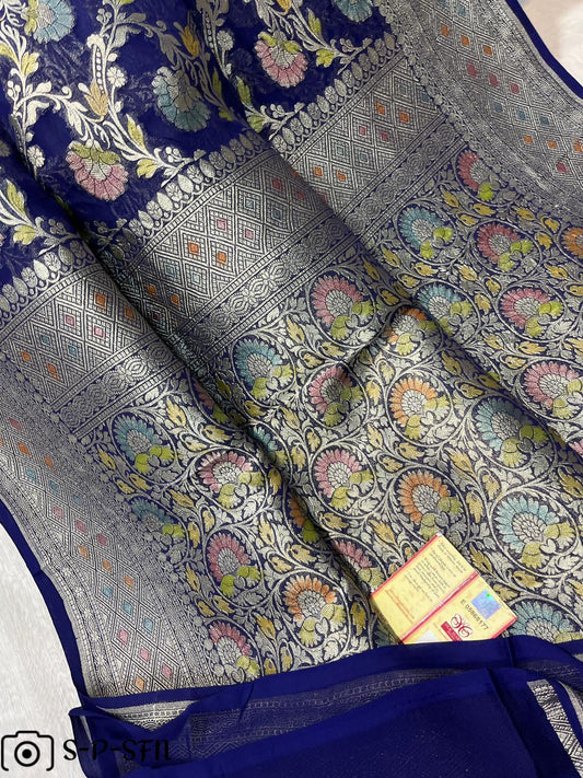 Pure Khaddi Georgette Navy Blue Banarasi Saree