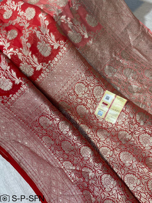 Pure Khaddi Georgette Haldi Banarasi Saree