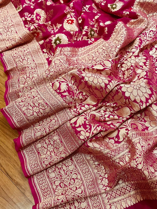 Pure Khaddi Georgette Silk Rani Pink Saree