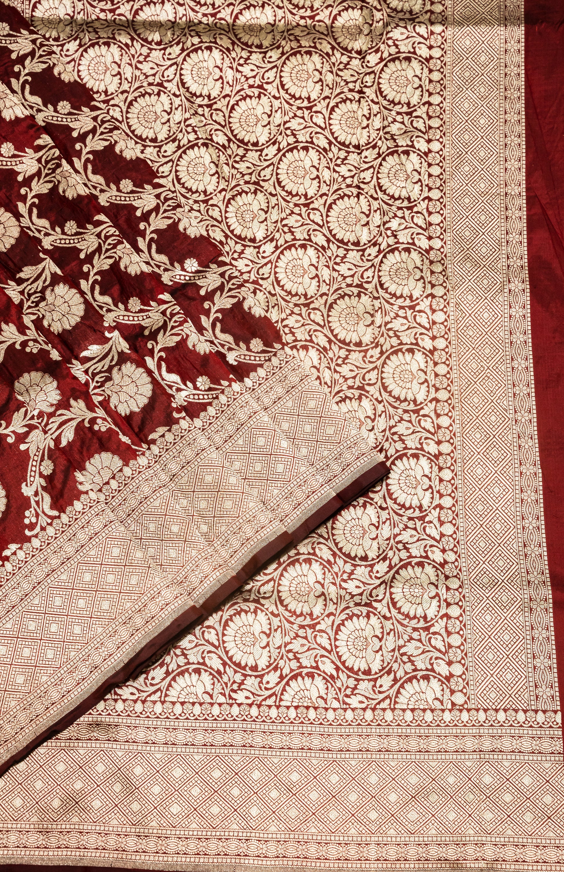 Mehroon Jaal Handwoven Pure Katan Silk Banarasi Saree