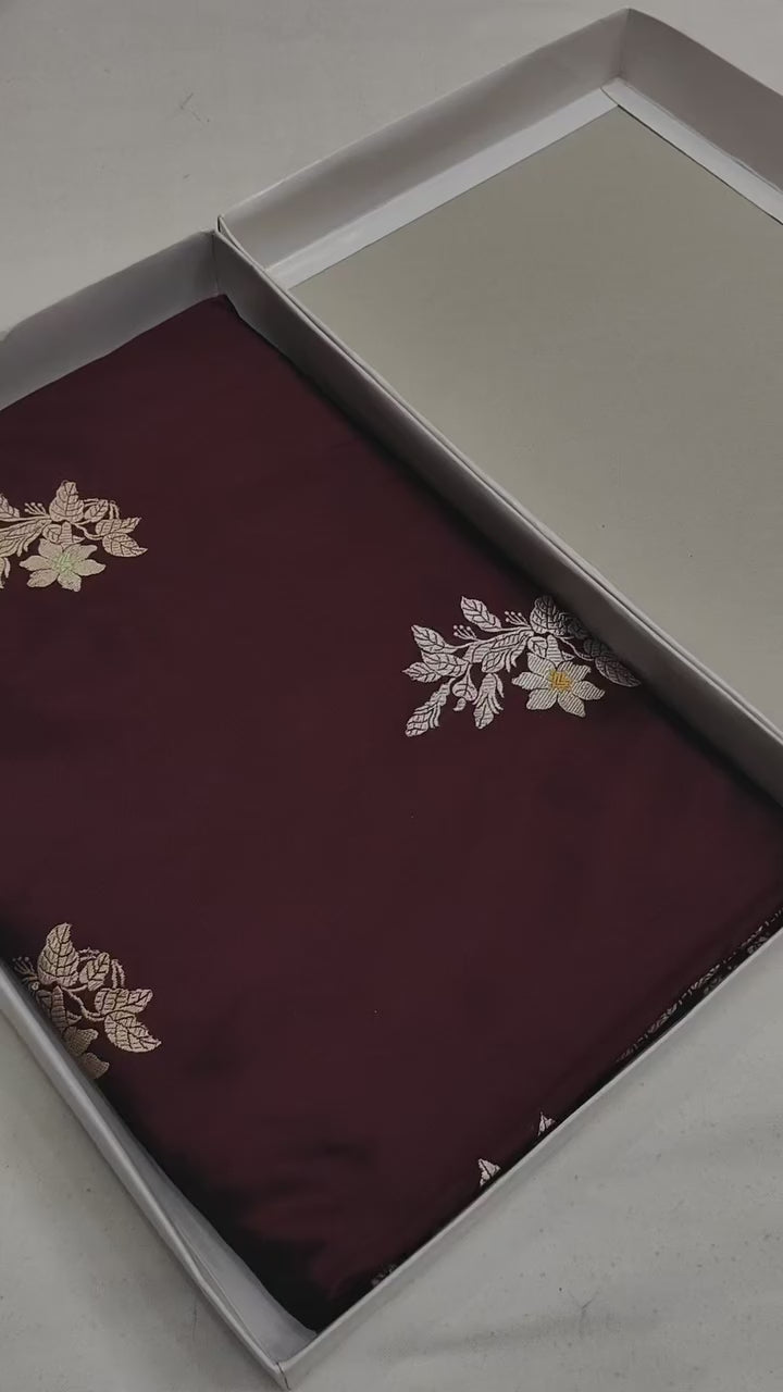 Embrace sophistication with this exquisite Wine Handwoven Vintage Pure Banarasi Silk Boota Saree from Metro Silk House. Woven with meticulous precision by master craftsmen, this saree features ornate boota patterns that celebrate centuries of Banarasi weaving tradition. The deep wine shade exudes understated luxury and timeless appeal, perfect for weddings, festivals, and formal gatherings. Made from pure Banarasi silk, it delivers an unparalleled drape and lustrous finish that enhances your natural grace. Every thread reflects authentic artisanal excellence, blending vintage aesthetics with contemporary elegance. Invest in a piece of heritage that transcends trends and becomes a cherished heirloom, showcasing your refined appreciation for genuine Indian textile artistry.