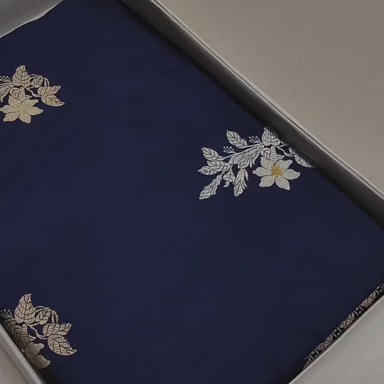 Royal Blue Handwoven Vintage Pure Banarasi Silk Boota Saree