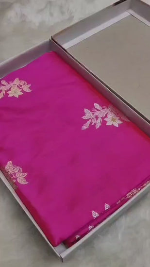 Radiate regal splendor with this breathtaking Rani Handwoven Vintage Pure Banarasi Silk Boota Saree by Metro Silk House. Painstakingly handwoven by master craftspeople, this saree showcases ornate boota motifs that honor the prestigious legacy of Banarasi textile artistry. The vibrant rani pink hue exudes confidence and timeless femininity, making it the perfect statement piece for weddings, festivals, and momentous celebrations. Woven from pure Banarasi silk, it offers an unparalleled drape and lustrous finish that gracefully enhances your silhouette. This vintage-inspired creation beautifully marries traditional weaving excellence with contemporary elegance, ensuring you wear a distinctive heirloom-quality piece. Celebrate your special moments in authentic handcrafted luxury that embodies cultural richness and refined sophistication.
