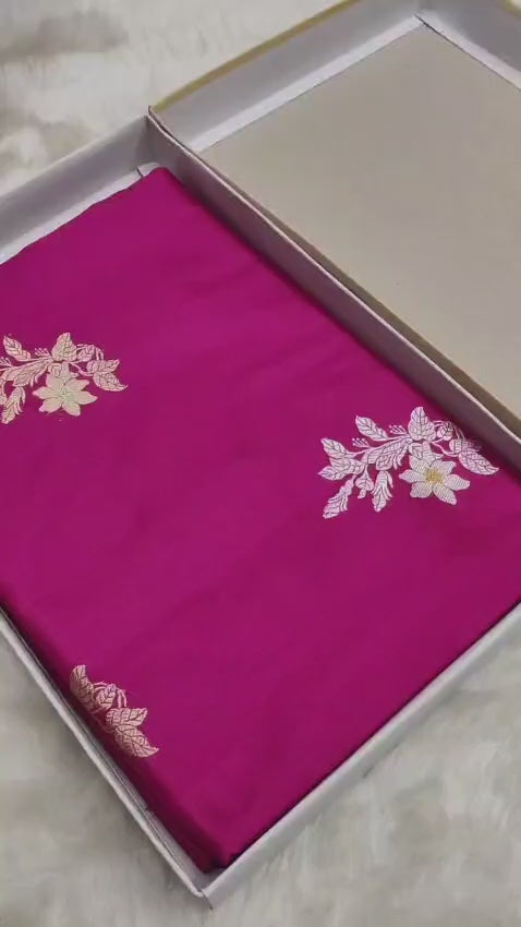 Magenta Handwoven Vintage Pure Banarasi Silk Boota Saree