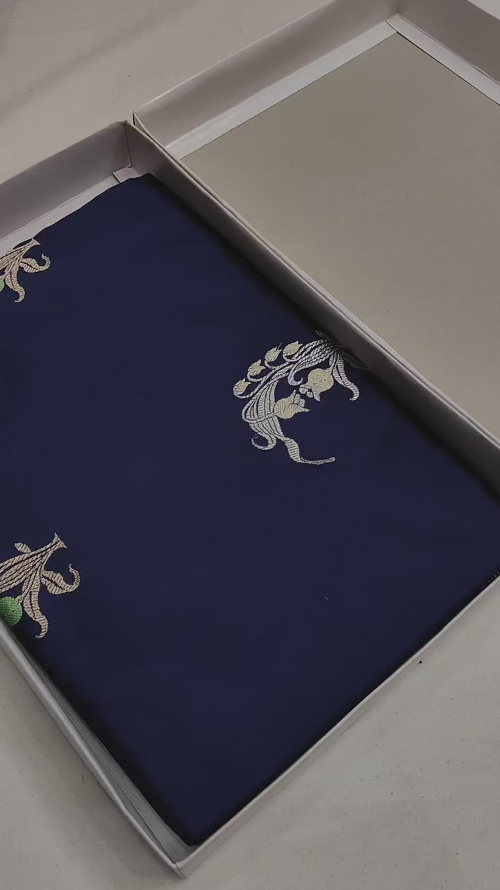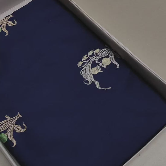 Navy Blue Handwoven Vintage Pure Banarasi Silk Saree