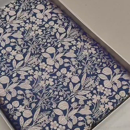 Command attention with the Royal Blue Pure Handloom Katan Brocade Banarasi Saree from Metro Silk House. Woven from luxurious Katan silk, this saree highlights intricate brocade craftsmanship that adds depth and texture. The rich royal blue shade exudes elegance and confidence, making it perfect for weddings, festivals, and special occasions. Designed for a comfortable fit and graceful drape, it elevates your traditional attire with timeless sophistication and style. Make a memorable statement in this stunning Banarasi treasure.